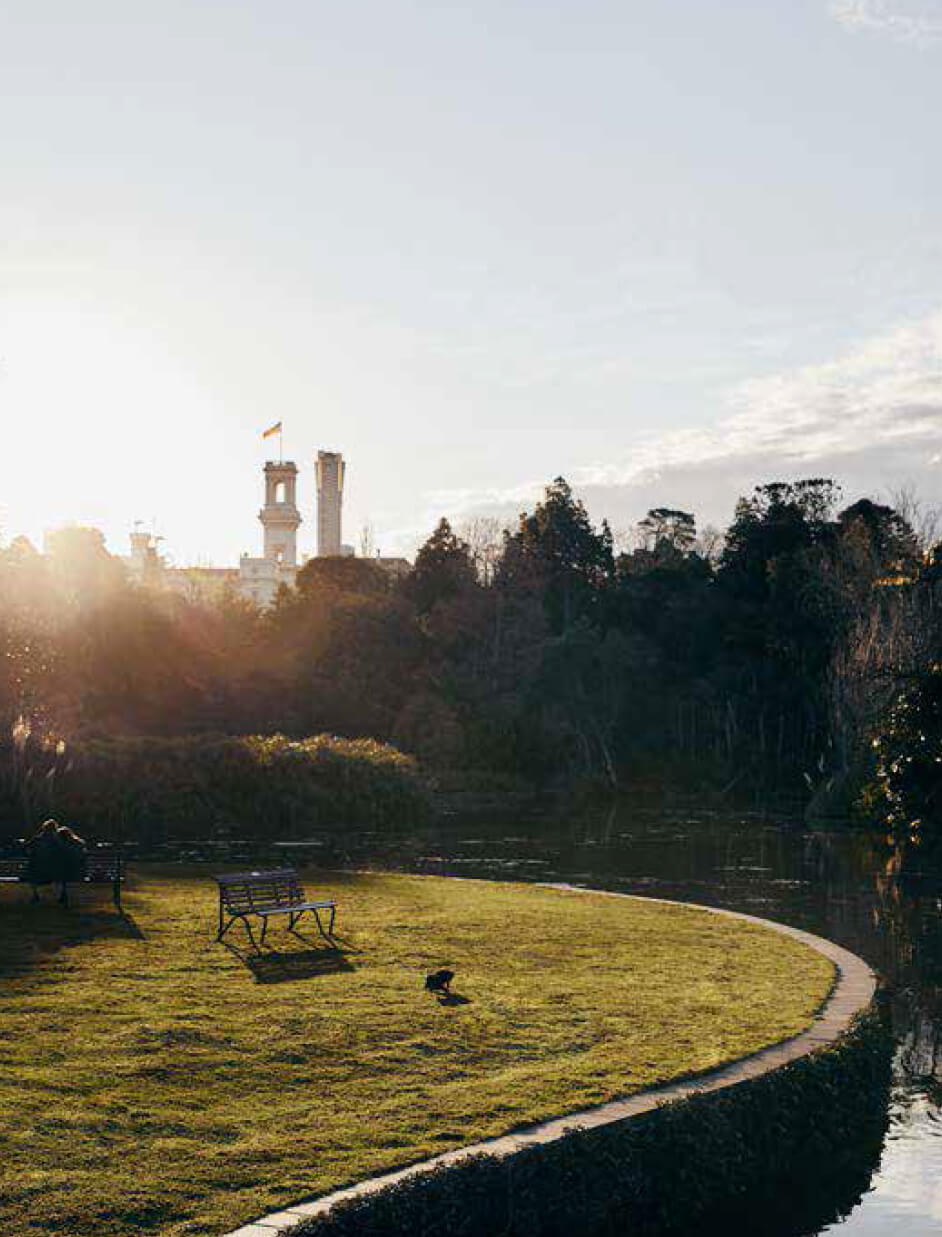 Surrounded by Melbourne's Royal Botanic Gardens, lush and alive year-round with diverse flora and fauna.
